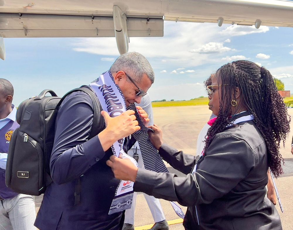 À chegada ao Aeroporto Albano Machado, o governante, que se faz acompanhar pela Ministra da Saúde e por quadros seniores do seu ministério, foi recebido pelo Governador daProvíncia, Pereira Alfredo, que lhe dirigiu palavras de boas-vindas e destacou a importância da visita para o reforço das infra-estruturas desportivas locais.